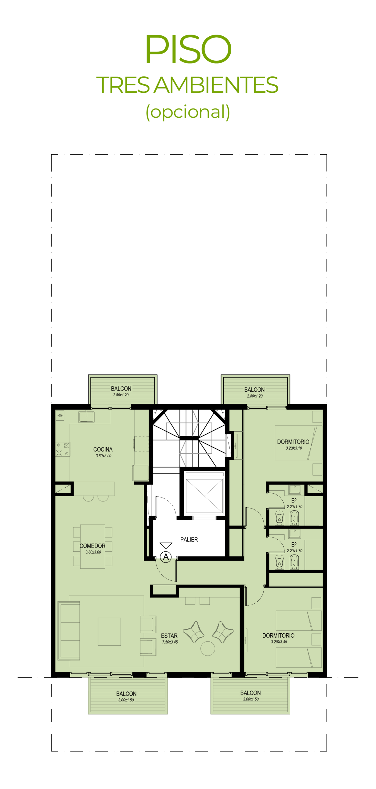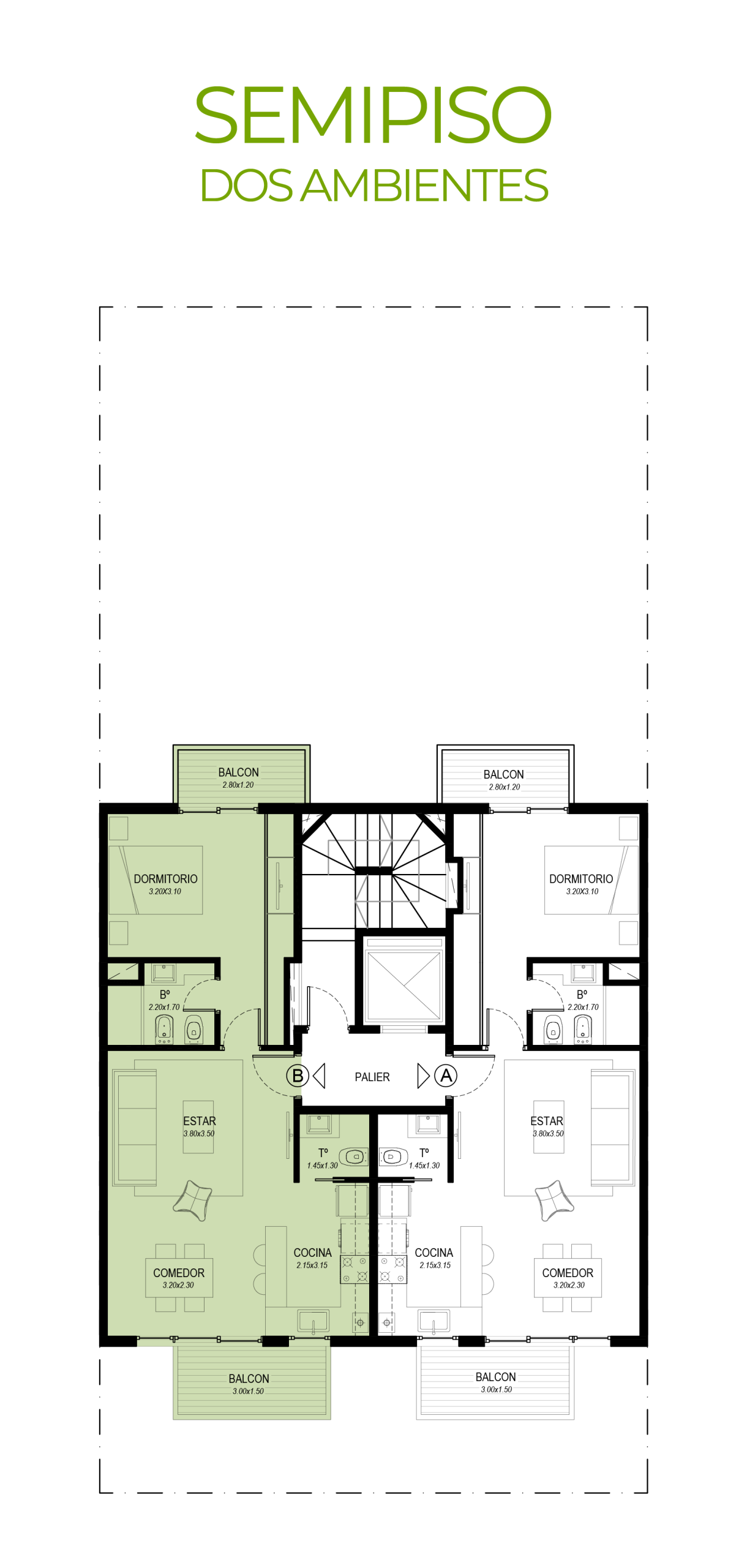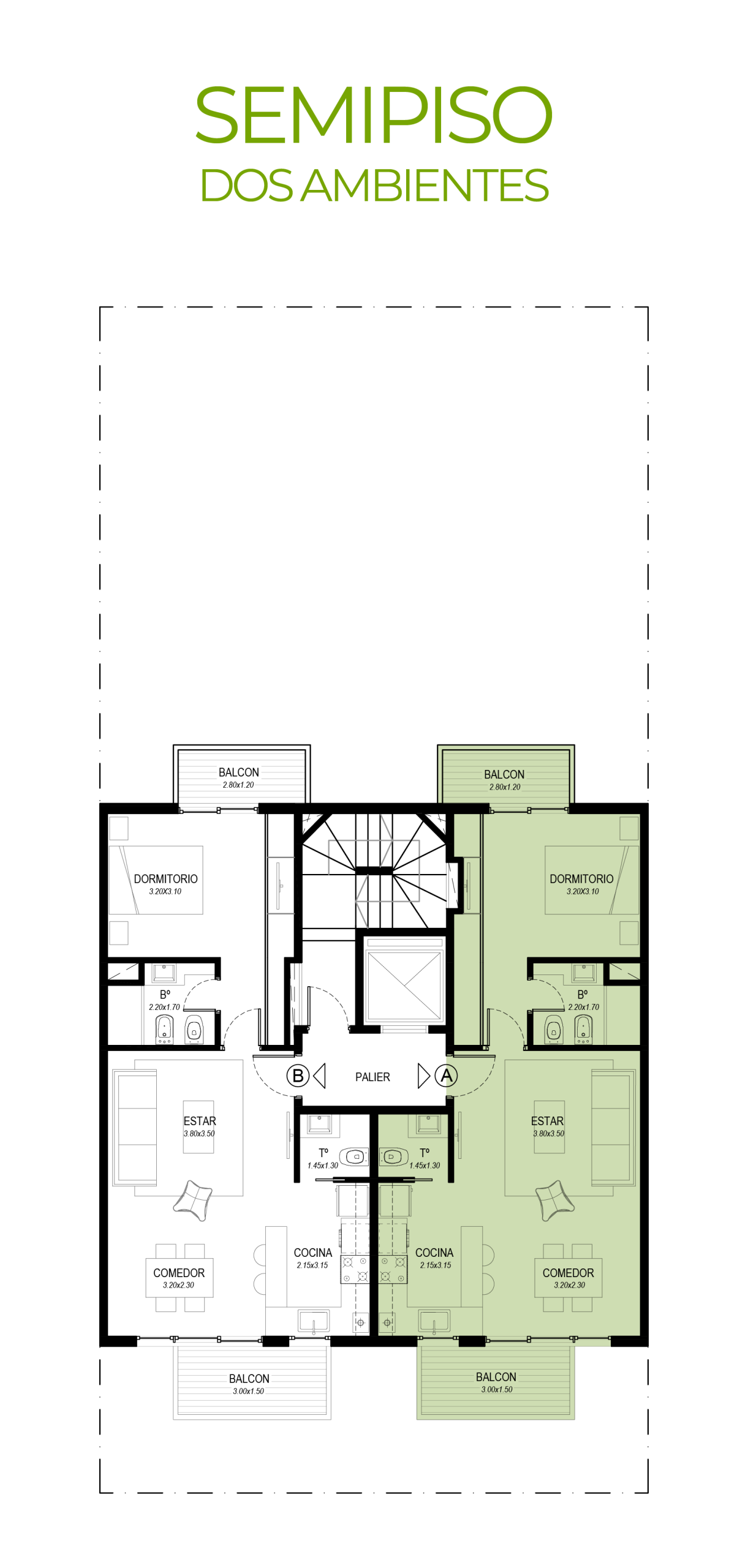 de dos ambientes y pisos de tres ambientes, ofreciendo un